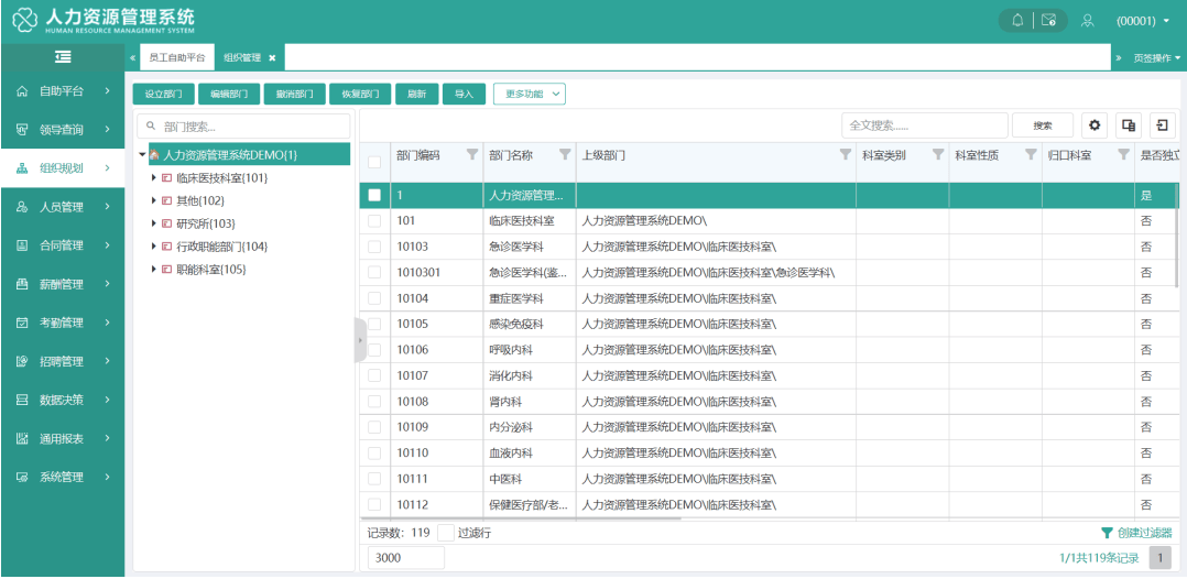 灵活搭建组织架构,实现组织岗位职务管理规范化;支持多院区组织结构,支持医联体、医共体、集团医院多机构管控模式:支持虚拟组织管理,满足医院多形态组织构建与管理;可追溯时间点组织结构图,了解组织变迁历程助力战略调整;灵活设置编制控制方式,保证人员不超编。