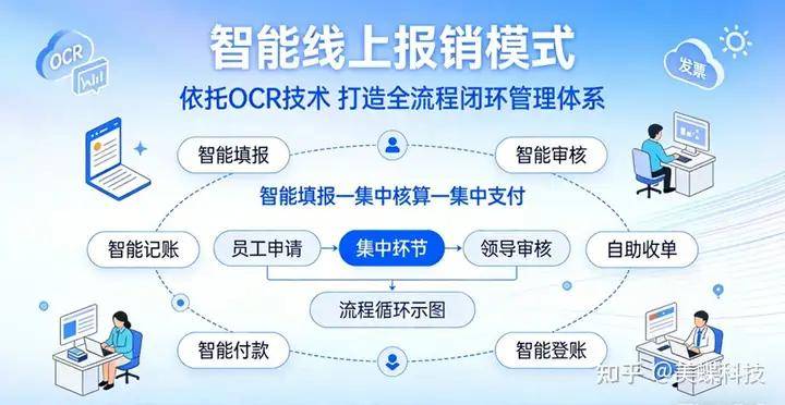 依托 OCR 等智能技术,集成发票云应用,打造 “智能填报 — 集中核算 — 集中支付” 全流程线上报销模式,构建 “员工申请、领导审核” 的闭环管理体系,提供高效高质的报销服务。系统涵盖智能填报、智能审核、自助收单、智能记账、智能付款、智能登账六大核心功能,核心价值突出: