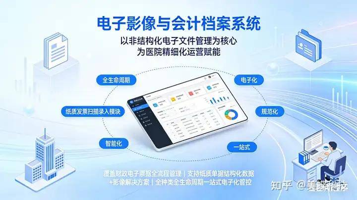 以非结构化电子文件管理为核心,以数据逻辑精准复现为抓手,覆盖财政电子票据全流程流转管理,支持纸质发票等原始单据的结构化数据与影像化处理。通过全流程状态登记、更新、跟踪与检索,实现全种类、全生命周期、电子化、规范化、智能化、一站式的会计档案管理,赋能医院精细化运营与精益化管控,核心价值凸显: